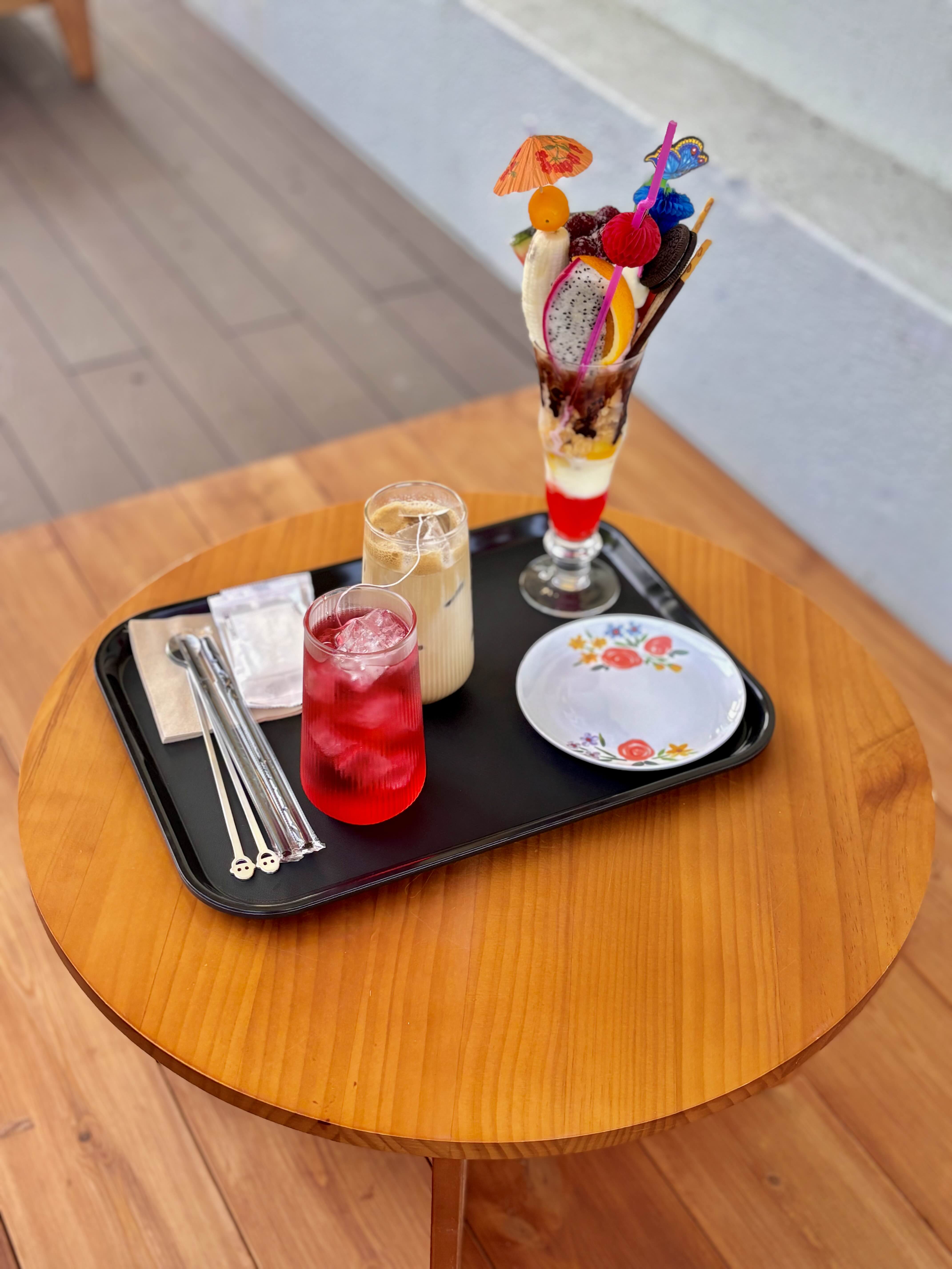 소풍파르페는 비주얼부터 귀엽고, 과일이랑 시리얼, 크림이 푸짐하게 올라가 있어서 디저트지만 꽤나 든든했어요. 히비스커스 티는 새콤하고 상큼한 맛이 가볍게 즐기기 좋았고요, 바닐라라떼는 고소하면서도 단맛이 살짝 도는 게 제 입맛에 딱 맞았어요!